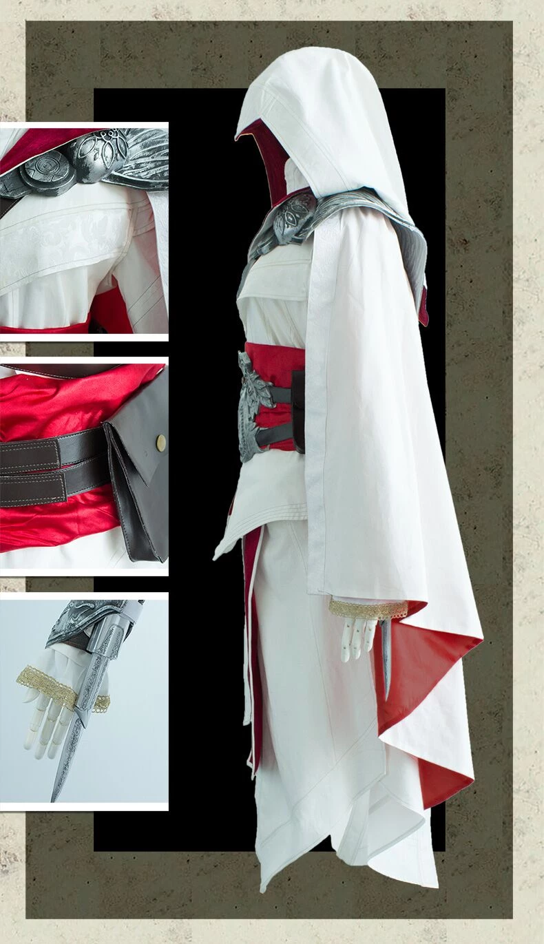 What else can your aspire for if you can reach your dream of becoming the most skilled cosplayer in the cosplaying arena as you enjoy your costume from head to toe. Enjoy maneuvering attacks and executing your physical, mental and emotional strength and strategies. Become loud and outspoken and allow your emotions to come out always when you execute your costume to give you the strong vibe. Control your verbal assaults and being too angry because you might beat others out due to hesitation. Bring your props and accessories and do not forget to carry your long sword to give you the Assassinโs Creed effect. You can actually become the group leader in any gathering or party. For sure everyone will surely perceive your leadership and skills fit for a fighter. Your cosplay costume will be suitable for your fighting style and your personality will be complete with your majestic appearance. Assassin’s Creed Brotherhood Ezio Auditore da Firenze Cosplay Cotume. Assassinโs Creed, Brotherhood Ezio Auditore da Firenze Cosplay is the continuation of the Auditorโs story, and he returns to the city the day before his sisterโs birthday party. He wakes up without amour merely to find his city assailed by Cesareโฆ who is the enemy in this cosplay scene. Ezra needs to fight off Cesare and his troops but his uncle, Mario, is killed during his attempt. Cesare steals the Apple of Eden and Ezio has to escape the city immediately to retrieve the Apple. He travels to Rome to influence the Borgia Family and Romeโs people. Ezra recruits assassins, which is why itโs called โ Assassinโs Creed Brotherhood Ezio Cosplay.โ Cesar ends up killing Rodrigo by forcing him to eat an apple thatโs poisonous. Ezra chases Cesare to the Apple of Eden, and he claims it using it to kill many of the enemiesโ men. Cesare is eventually arrested who then escapes to Spain where Ezio fights him and throws him off of a ledge.